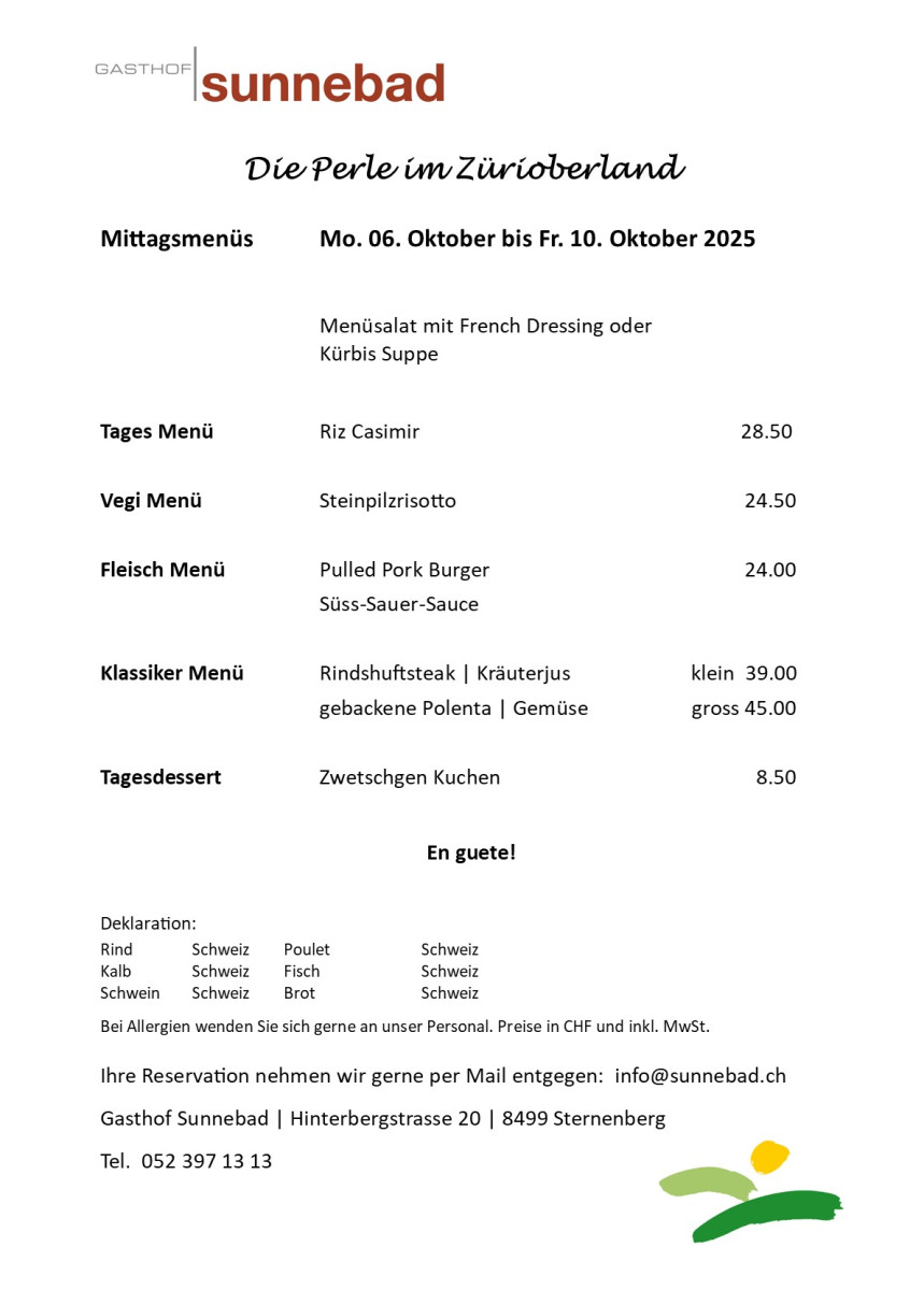Newsletter unter info@sunnebad.ch